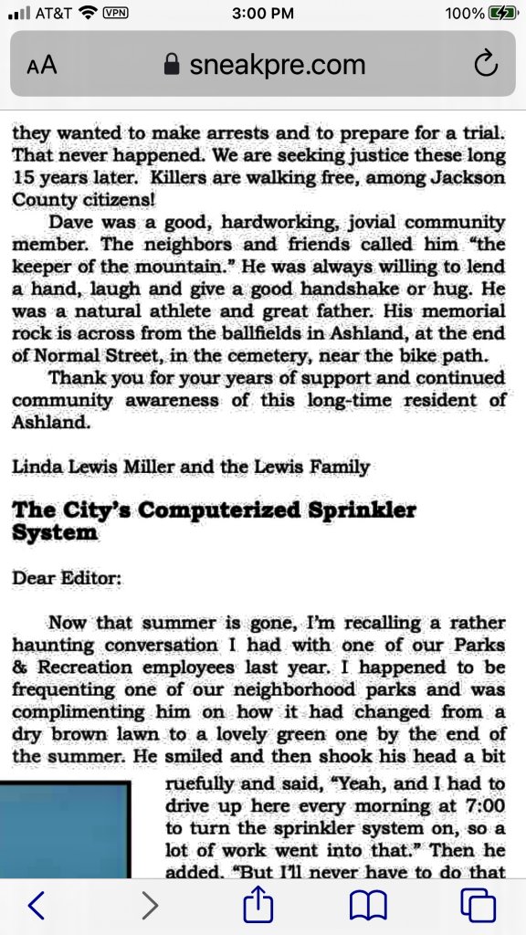 As time went on, accusations of corruption in Jackson County were inexplicably tied to Dave’s murder in ways that escaped this careful reader. The Chinese? The former mayor of Ashland? A helicopter company? It was bizarre, and made me question her mental health, although I expect it all made sense in the mind of Dave’s sister. Grief and anger can certainly distort one’s thinking. And yet, a reader could legitimately wonder if there was a “method to the madness“ as some here do. So if Dave’s sister was willing to attack and accuse so many in the community, one would hope (whoever she is) that she would be able to absorb the concerns of WS members couched in much more gentle language.