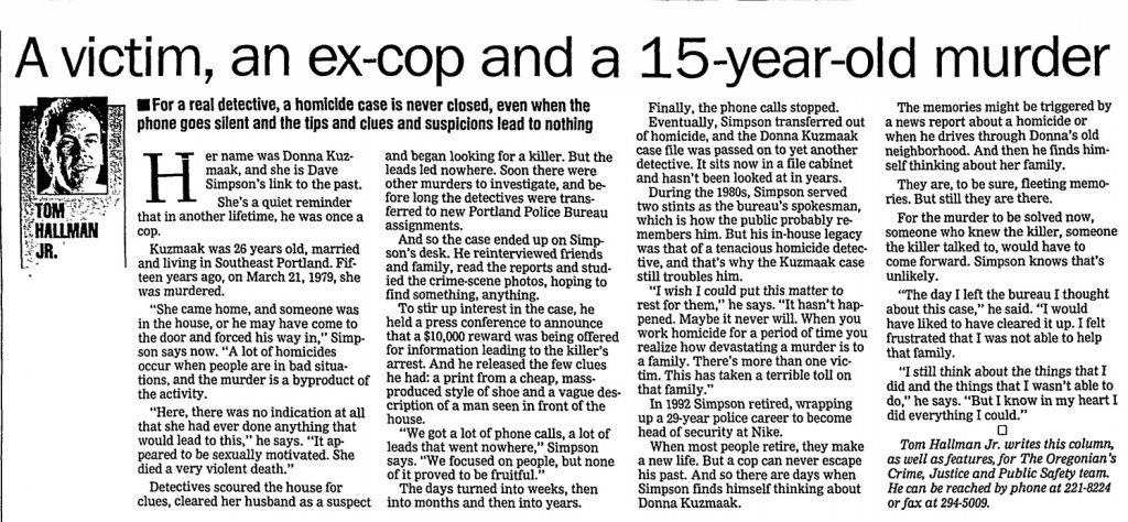 Police also matched bloody footprints found in the basement to a pair of Aspen Trailfinder hiking boots. The shoes were fairly common and sold at several stores in Portland at the time."