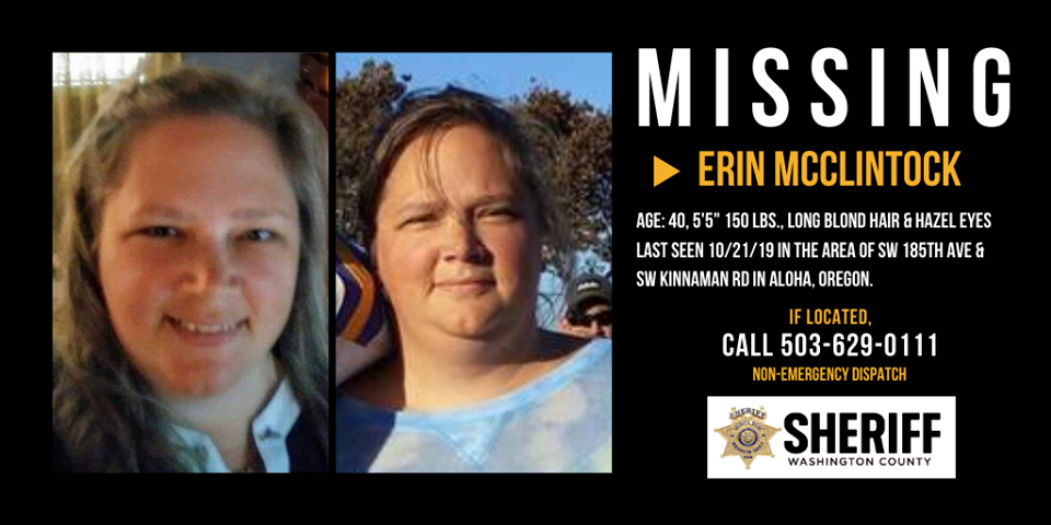 We're still looking for any information about Erin McClintock - missing from the Aloha area since Monday.