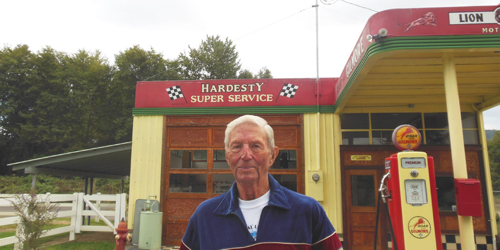 My husband once spotted Harold's old gas station from the freeway, and he and a friend drove down the road leading to it. As they drove, they realized it was private property, but Harold came out and was kind enough to give them a tour. Here he is, standing in front (from the link below).