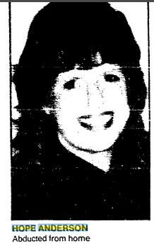 Circumstances: Eye witnesses reported that Anderson was abducted from her home.