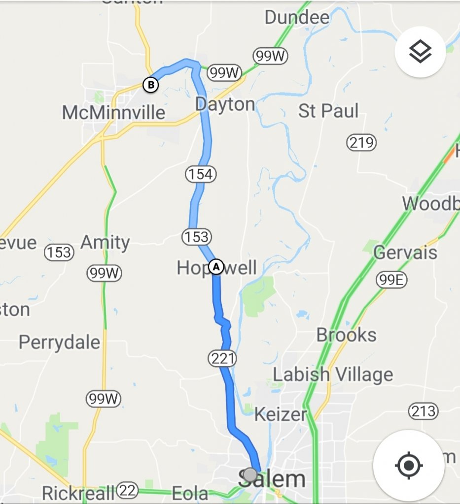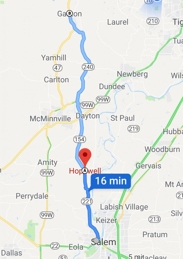 Going through Hopewell to get to West Salem (her apartment is in west Salem) is one of the shortcuts locals use instead of Hwy 99W. (I grew up in Yamhill County am now in Washington County and still go to west Salem this way)