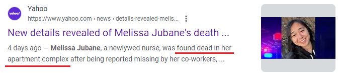 HOWEVER, and this is a BIG HOWEVER.... the actual article after clicking on the link says nothing about where she was found, and there was only 1 instance of the word apartment in the entire article, and that was in regards to the fact that BS was a neighbor in the apartment complex.