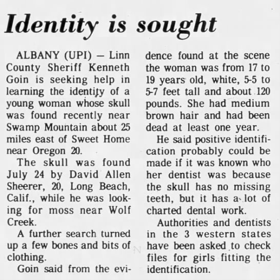 RULED OUT: Oregon State Police From LE: "This is an unlikely match, as both the MP and UP have DNA uploaded into the national DNA database. However, we cannot exclude the MP officially because only the biological brother has been tested; we've been told by the University of North Texas not to add exclusions if only one relative is in the database. So, it's possible but unlikely."