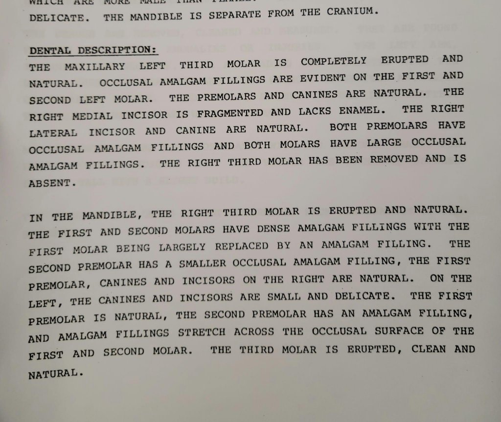 Yes, that is correct. Here is the report showing he used the first Doe dental information to rule my mother out on the 2nd Doe found in Union County. He states this skull contains “unerupted wisdom teeth”. That is true on the Multnomah Doe but NOT on the Union County Doe. You can clearly see 3 wisdom teeth and no evidence of extensive dental work in the autopsy photo. Do you see the teeth in the photos?Worth repeating (quoting @PattysVoice (that is you, right?)): "Timms believes the discrepancy is due to an error made by the OSP’s medical examiner while doing examinations of the skeletal remains for two Jane Does in his office at about the same time in 1978. She suspects he assigned his reports to the wrong Jane Does because his report for the second Jane Doe matches her mother’s autopsy photos and dental records."