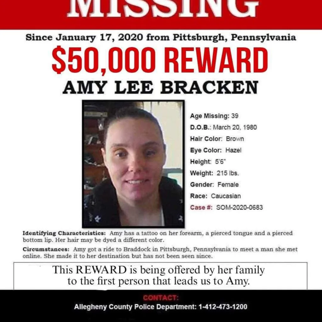 It's uncharacteristic of Bracken to leave without warning or to be out of touch with her family. After her disappearance, someone fraudulently used her Access card in North Braddock. Her case remains unsolved.