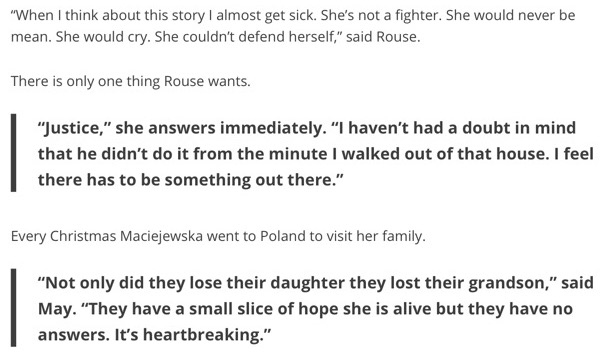 As time drags on, I wonder if there will ever be justice for Anna. Does anyone know at what point the police/prosecutors might consider charges even if no body is found? Would it help if there was pressure from the local community?