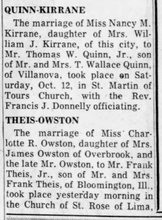 Kirrane, a life-long resident of Philadelphia, Pennsylvania, departed that city on 09/09/85 for points west. Indications are she intended to start a new life away from Philadelphia and her family.