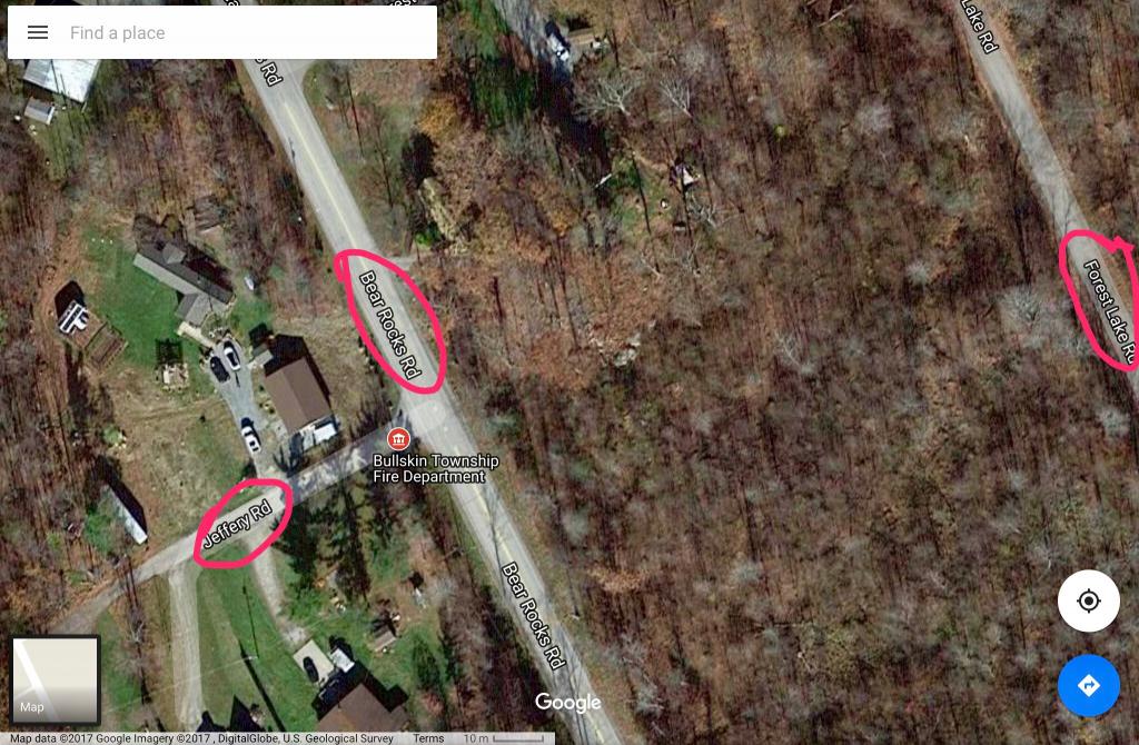 I've attached 2 pictures of maps of the area . One is an overview of the area being investigated , the other is a closer view with street names circled. They say the remains were found near Bear Rocks Road between Forest Lake Rd and Jeffery Rd.
