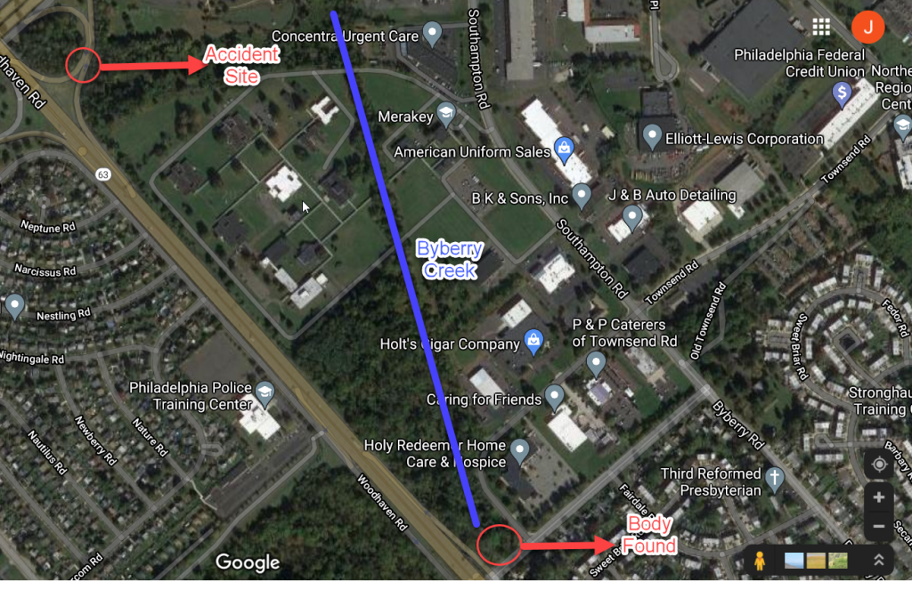 I really wasn't picturing how it all happened until I connected the dots on the map. Now I see that is 100% what happened, especially with all the rain and flooding carrying her a half mile downstream.