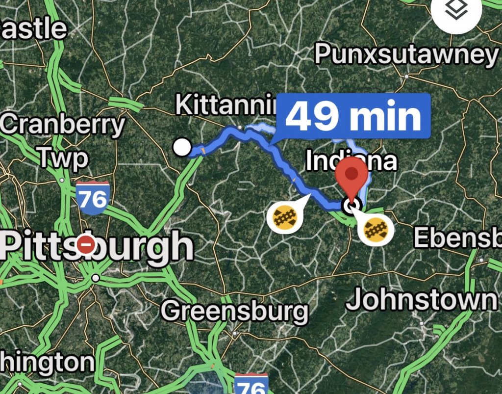 Indiana OA (where the retired officer lived) when he was approached by the van w/ the skier at age 10 and Cornplanter Road in Cabot (where Cherrie was abducted from) is about 40 miles between the two. Route 422 is almost a straight shot for 20 miles