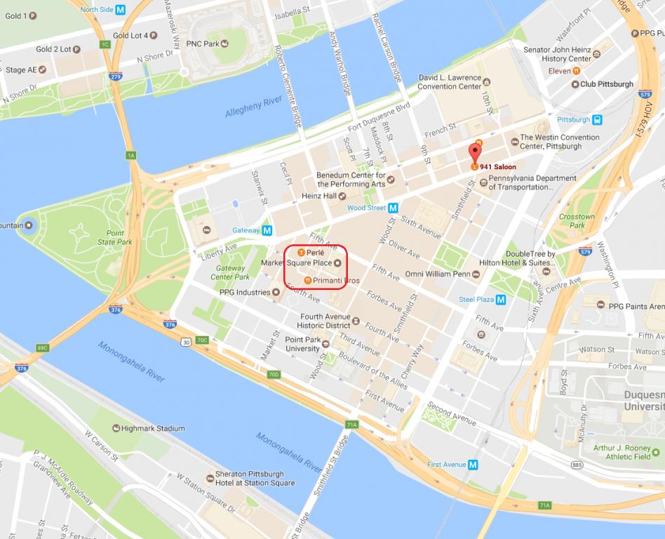 A simple map, indicating last known location, "941 Saloon" at Liberty and Smithfield and possible sighting in "Market Square"...