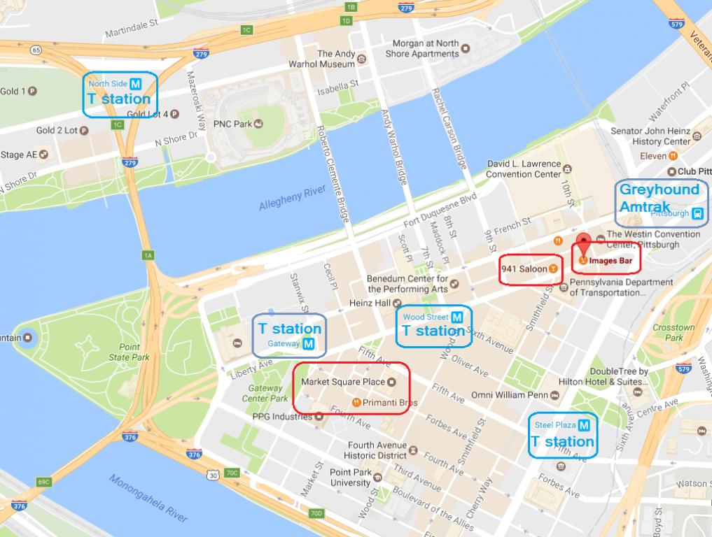 It is revealed DJ lives on the "North Side". For those not 'in-the-know', this is north of downtown Pittsburgh, the other side of the Allegheny River. Three bridges that allow foot-traffic cross that river from downtown to the North Side. There also is a "T" trolley (some might know it as an "EL") that connects downtown to the North Side. The T line runs either above or below ground level in certain areas. The Wood Street station is below ground level.