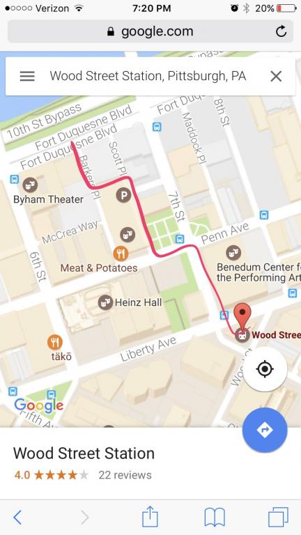 Second thing... this is clearly a path that he took frequently. I'm downtown in the cultural district a lot, and have parked in the garage off of 7th Street many times. I frequently go to a restaurant on Penn, about a block from Katz Plaza (called Meat and Potatoes). I've never noticed the short cut behind Katz and back to the garage... and if I had, I certainly wouldn't take it. At any rate, I feel that he was headed for the Roberto Clemente bridge, as if he was heading for the Warhol/7th Street bridge, he wouldn't have cut through Katz/Scott/Barkers. If he was headed for the Warhol/7th Street Bridge, he would have continued walking straight, and not turned left to get to Katz Plaza. I hope this makes sense. I'm attaching a map with his path for clarification.