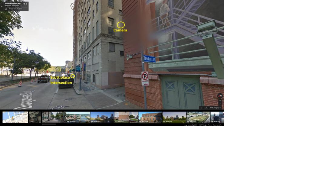 Ok, so this got me thinking again. If the camera at the Warhol/7th st. bridge is off because of construction (we don't know if it's working either way), then I'm not sure he would have been picked up on the camera in the photo below. That'd be a tough angle to capture footage coming out of Scott Pl., which would validate LE saying they couldn't tell if he turned left or right. He potentially could've gotten into a car right there and not been seen. And since it's a straight shot from where he was seen putting his phone into his pocket, then that makes some more sense. I just can't understand why that apartment building doesn't have cameras outside.