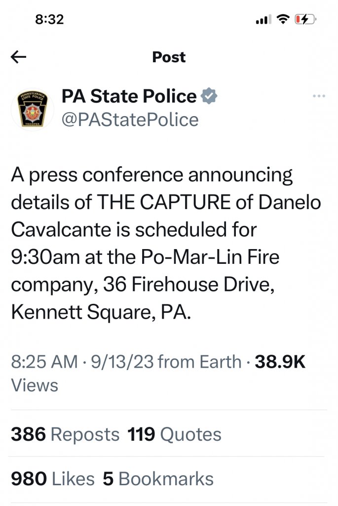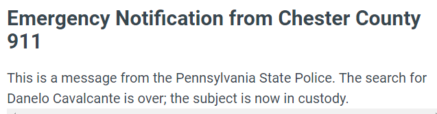 Escaped Chester County prisoner and convicted murderer Danelo Cavalcante has been captured after being on the run for 14 days.