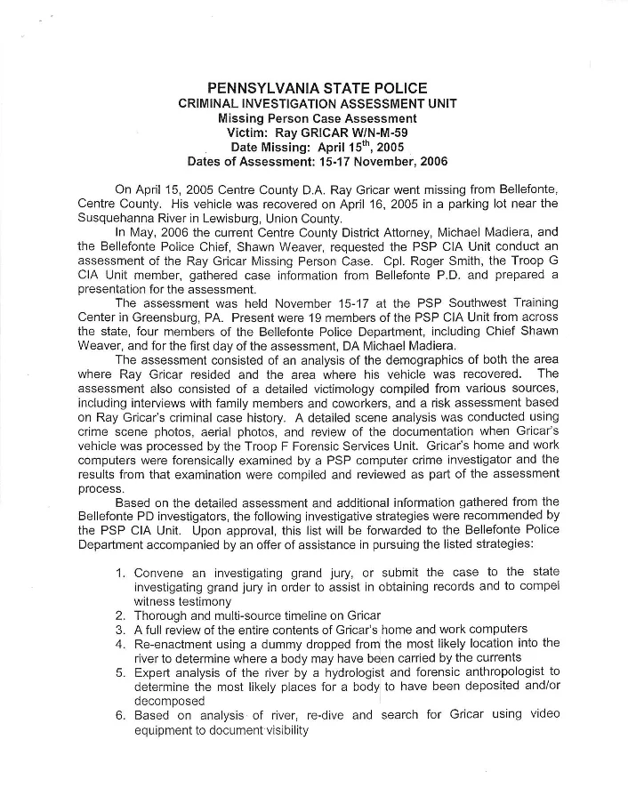 I assume the Centre County prosecutors office conducts regular audits of their finances. If Gricar was involved in anything illegal, it would have turned up in an audit.