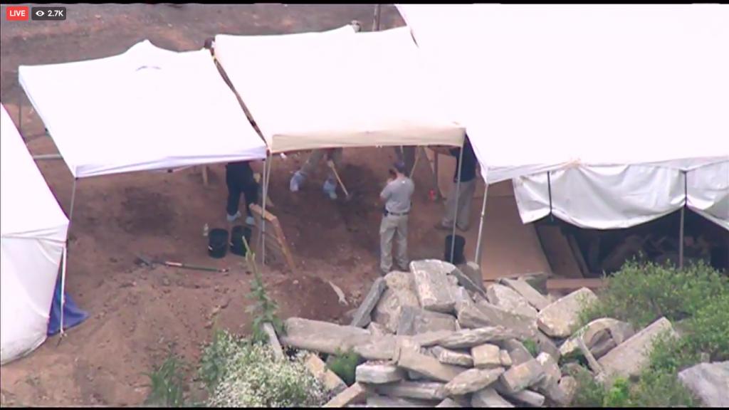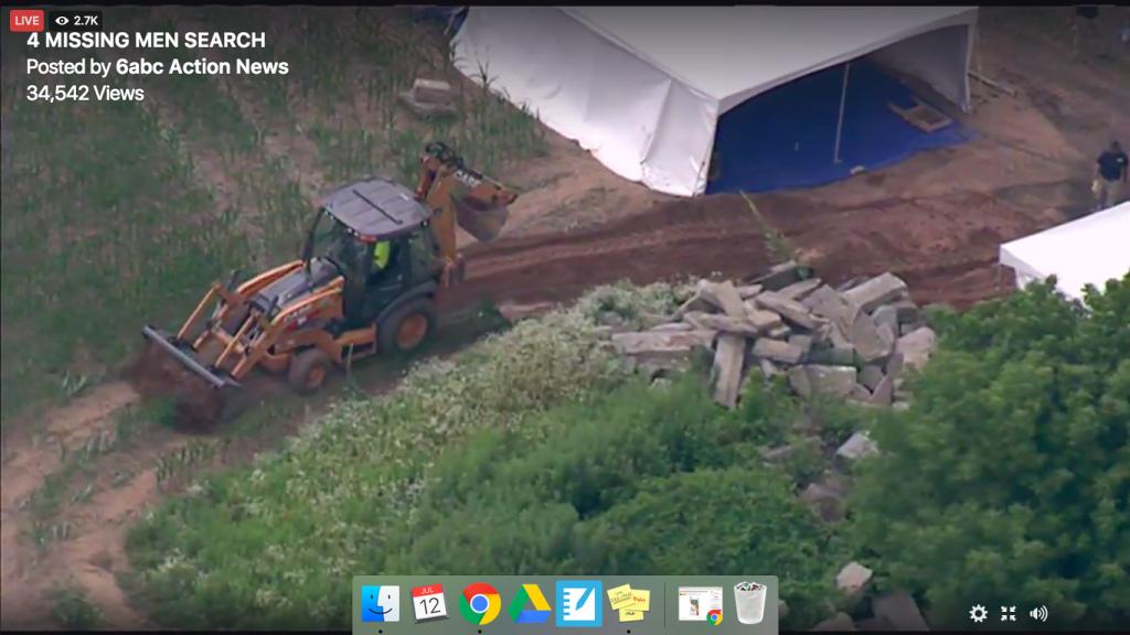 The cement was already piled there, I believe. There are still people in the original hole looking at something and it looks like they are clearing the middle area to possibly dig there. This is on the 6abc feed on their Facebook page https://www.facebook.com/6abcActionNews/?fref=ts