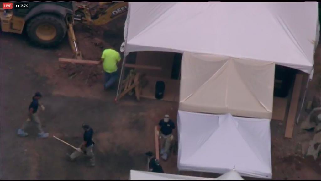 They removed the 'hallway ' type of tent and are now moving more dirt