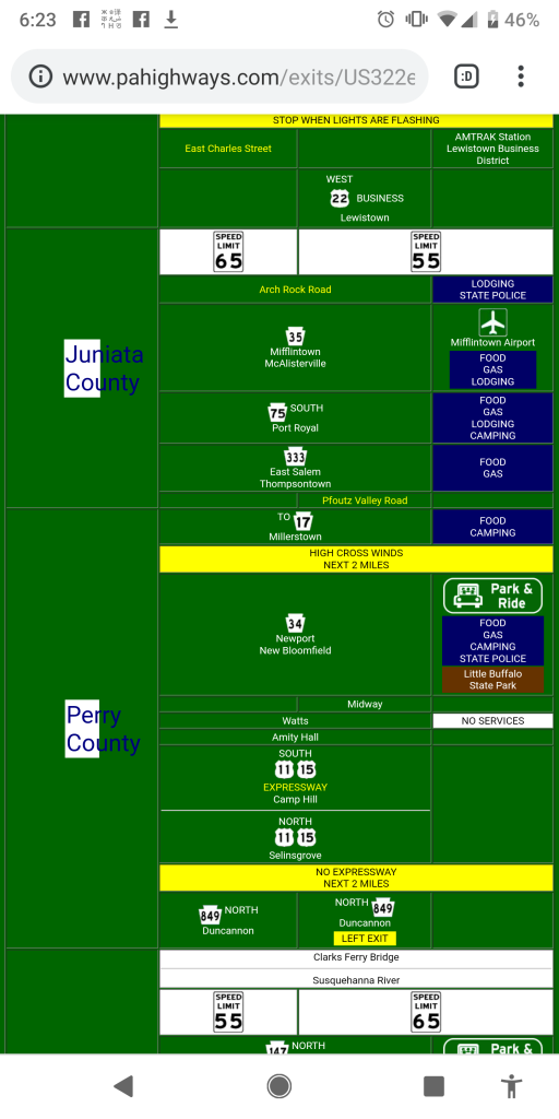 Continue East on US 22 / 322 barely into Buffalo Township, Perry County: