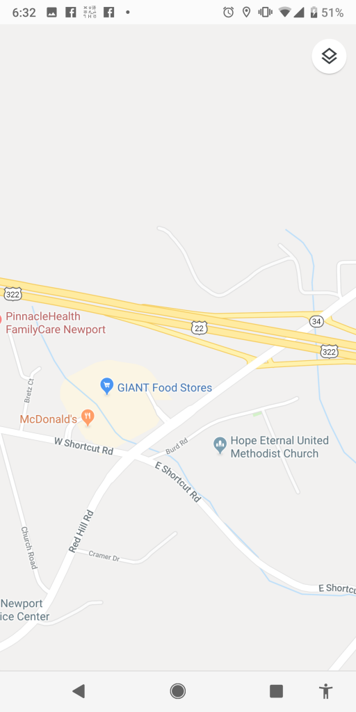 Okay, so he left his brother's house (without his cell phone) in State College, went to the police station in Lewiston, then his car was found on the highway near the midway exit on 322 East. Where is the midway exit? Can somebody add it to this map?