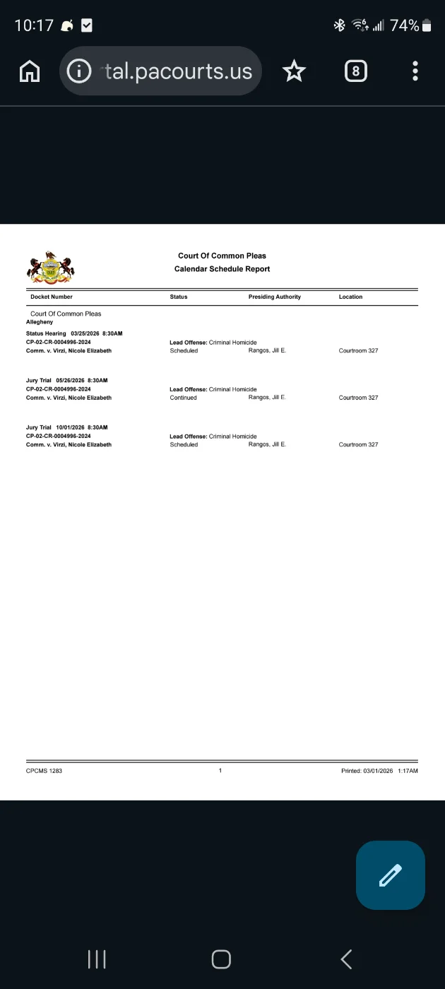 Motions court is still showing as scheduled for tomorrow.