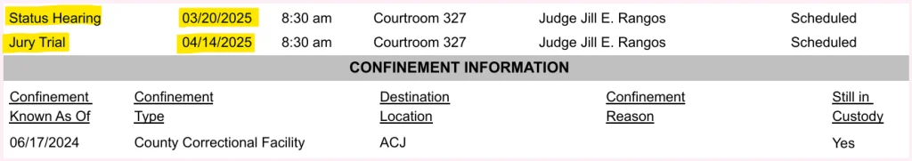 I'm seeing it scheduled for 4-14-2025 at 8:30 am on the docket search.