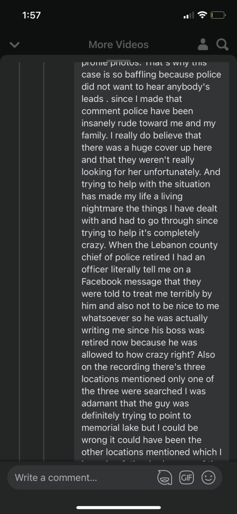 Milton and Cody were rumored to have been seen with shovels. Maybe she wasn't dumped in memorial lake, but buried around it? It's a big lake with quite a few concealed paths that can be accessed with a vehicle. They only had a couple of hours to get her out of the house, to the lake, and buried. It's an 18 minute drive from Palmyra to the lake. Im writing this at 3:12 am, so the traffic conditions are accurate to what they would have faced. The sister in the video said she believes whatever happened to Kortne happened between the police leaving and coming back for the last time. Police left at 3:49, were contacted by neighbors again at 4:11, knocked at 4:31 and left at 4:36.