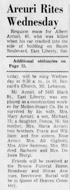 Albert Arcuri, who was 40, died eight months after his wife vanished. His car smashed into a brick wall of an auto dealership on Baum Boulevard.