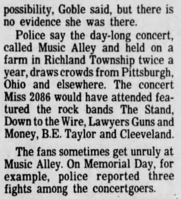 Also, has anyone talked about her being from further out of state and coming into town specifically for the music concert? I didn't see mention of how big an event it was.