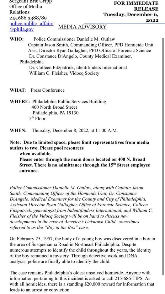 Identified! PA - Philadelphia, 'Boy in the Box', WhtMale 4-6, 4UMPA, Feb'57 #2 - Joseph Augustus Zarelli
