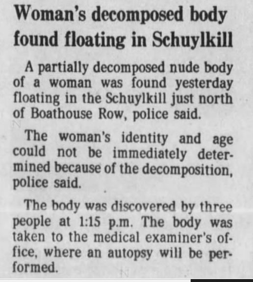 Circumstances of RecoveryWomen found floating in Schuylkill River