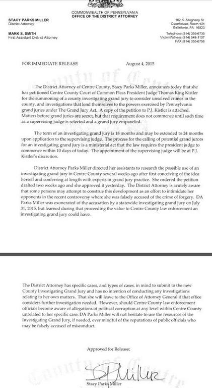 Second, unless there was an actual link to Luna, that is nowhere close to Centre County so it is out of the jurisdiction of the grand jury.