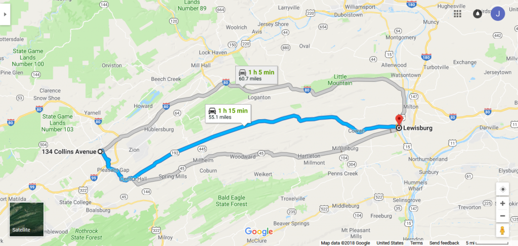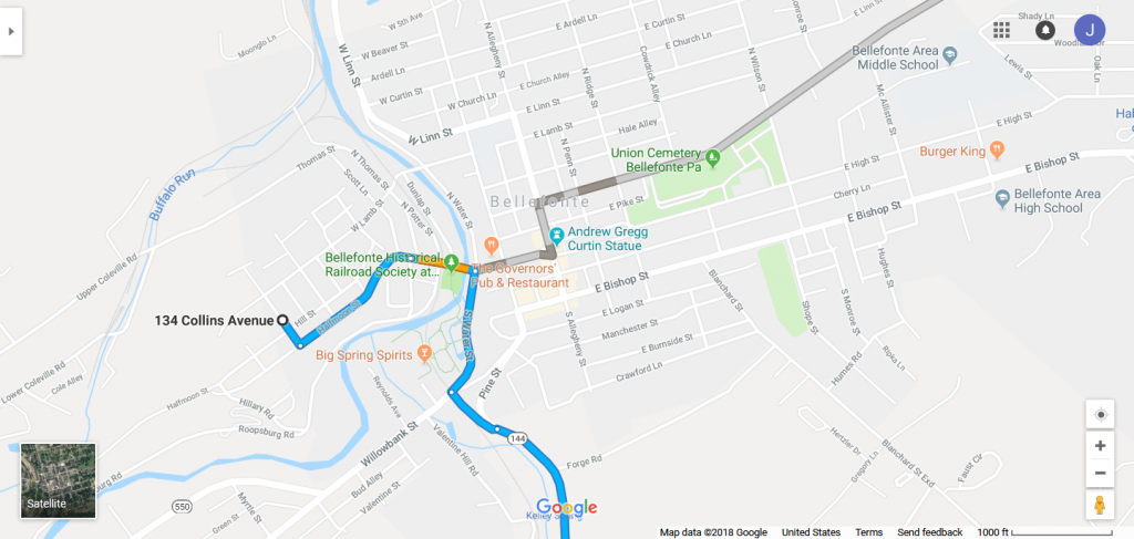 Second, they would have to know what route he would take. There is no bottleneck outside of Bellefonte. RFG, if he is sticking to the main roads, either has to turn right on Water St. (in Bellefonte) or continue on High Street until he gets to the Courthouse.