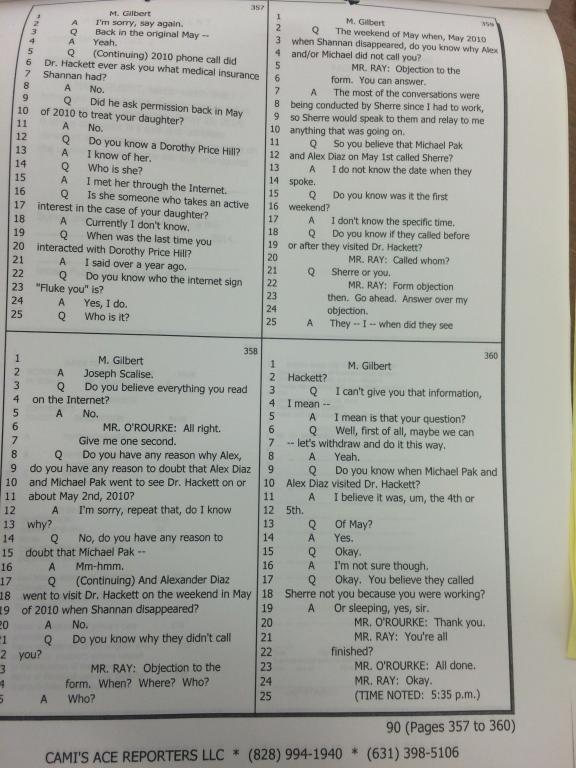 here is a page of Mari's deposition - in which she is telling Hackett's