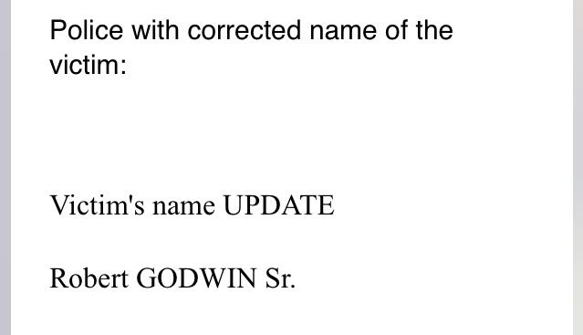 I have seen some posts saying the spelling of the victim is Godwin, not Goodwin, so we should keep an eye out for when it is verified. He deserves every ounce of respect we can muster up for him.