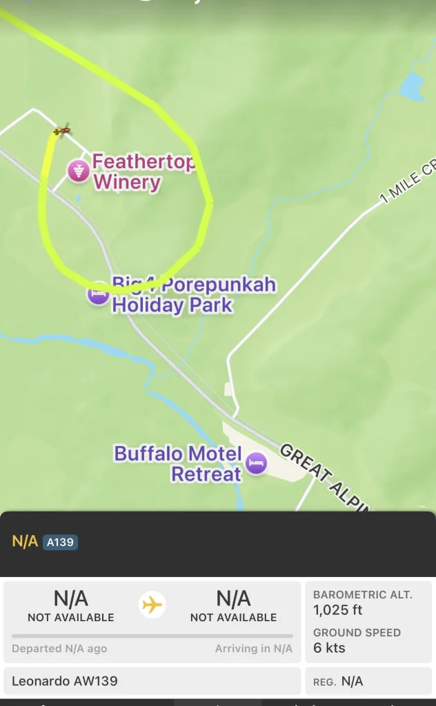 I just followed a helicopter come from Melbourne airport and land at the Police compound at Feathertop Winery.