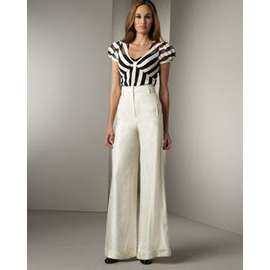 There was too much shirt. It needed to be more fitted and maybe a narrower stripe. I need a full length shot to comment on the trousers but she wears trousers well so I assume they'll look good.