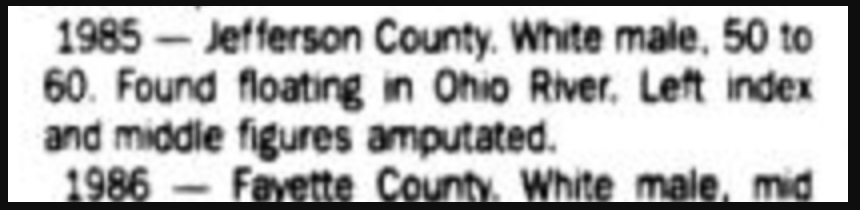 I would submit it manually but I can't find a single place to do so. The sheriff's website is pretty minimal.The missing fingers surely can’t be a coincidence! Throughout the course of all my research, I’ve tried cross-referencing any old articles I’ve found. I don’t have any UID from 1985. I think this is definitely worth submitting!