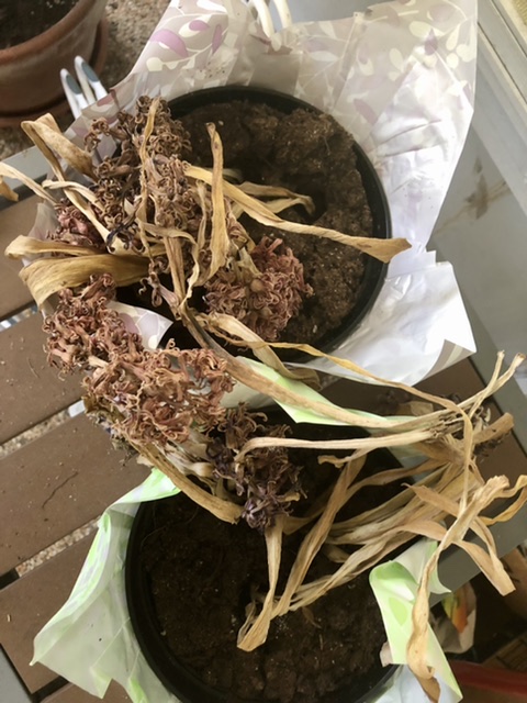 Back at Easter I had those 2 pretty hydrangeas. I read to preserve them you let them fade back so the nutrients go into the bulb. I think I over did the “let them fade” part. Pretty sure they’re dead dead. I guess I should just toss them???