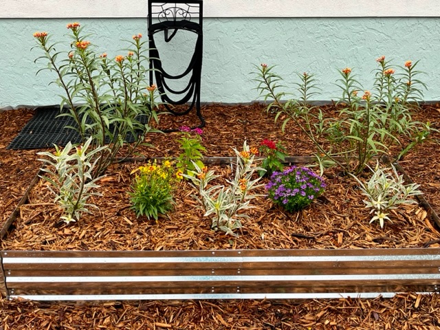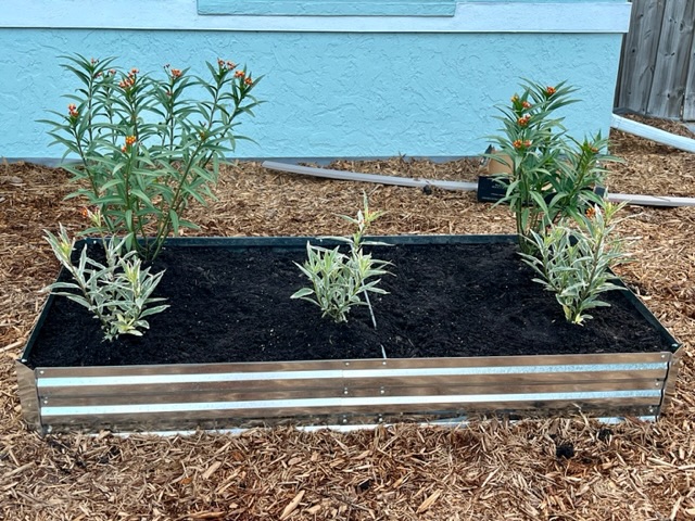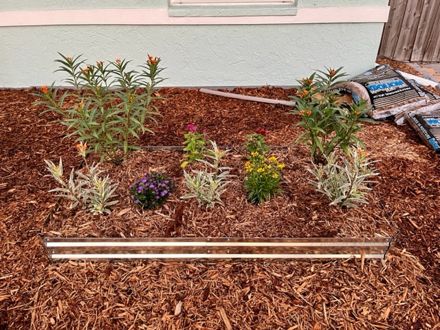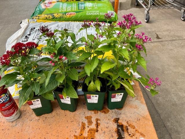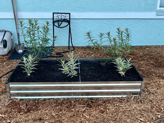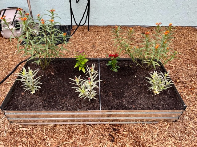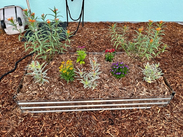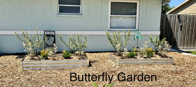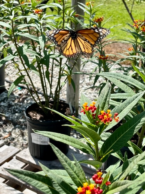 My butterfly garden was covered in aphids. I sat out there on my garden stool and sprayed water on every single plant, nearly every leaf, which blasted them off. Once they're off, they can't climb back on the plants. I had a Monarch butterfly today and the other day there was a different, lighter colored butterfly. I've seen wasps and today there was a bee. (I'm allergic to bees so I gave it some space.)