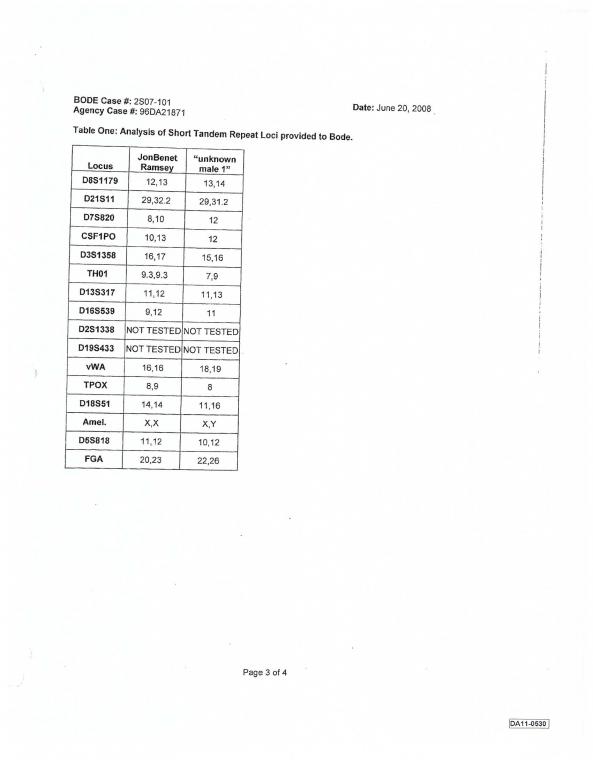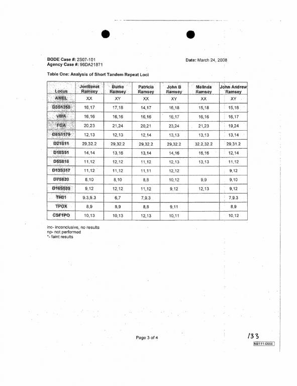 Well I don't know anything about DNA or where this information came from, but the column for "Intruder" looks like JAR's blood standard numbers that were on the pages released recently. I don't know how to link, but the pages were on the thread "Breaking News New DNA..." at the bottom of this page. On page 8 post #107 from Ambitioned (thank you) it has the pages from Bode and the 3rd set of documents have the blood standard for JBR, BR, PR, JR and JAR. It looks like those numbers on whatever report this is corresponds pretty much with JAR's blood standard for each locus? Am I comparing them correctly?
