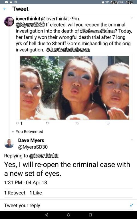 On behalf of Rebecca Zahau and our family, I want to thank everyone from the bottom of my heart to all our friends and all those who supported us through prayers and financially during this long fight. The truth prevails and God is good through all the struggle, heartbreak, and challenges.
