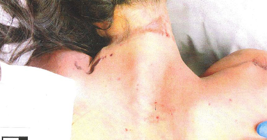 Okay, so we see the injury to the left, omg, there is another on the right where her arm/shoulder meets with her neck?
