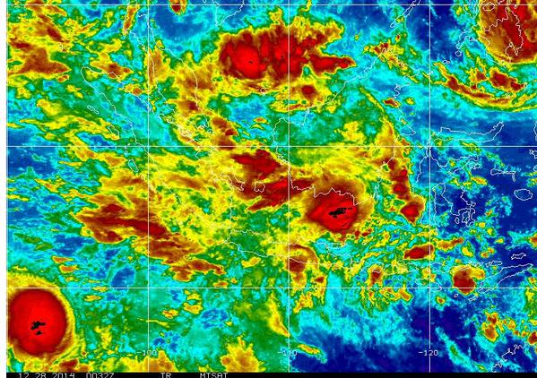 Satellite image reportedly near time #AirAsia flight went missing shows vigorous thunderstorms (black) N of Surabaya pic.twitter.com/TSYLkJrNRj