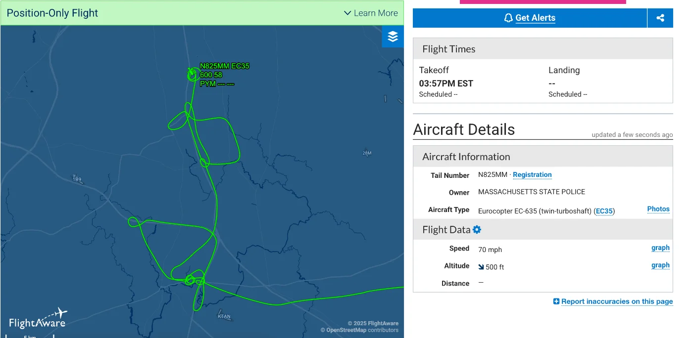 Heli registered to Mass State Police confirmed moving around Brockton outside of BostonView attachment 631574