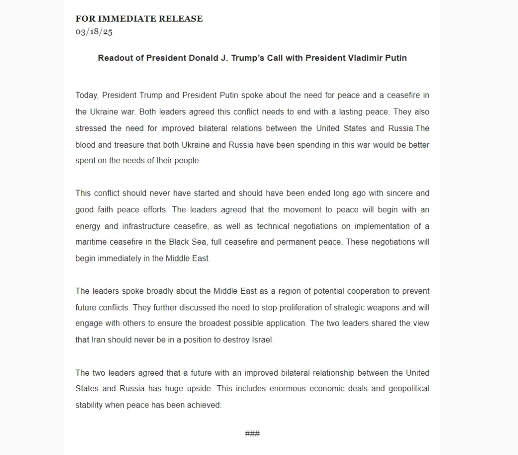 But the readout confirms that Putin has agreed to a 30-day ceasefire on energy infrastructure, and says the Russian leader has already issued relevant orders.