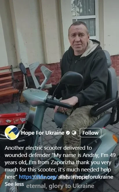 Another wonderful thing that Hope for Ukraine are doing. Providing motorised scooters to wounded Ukraine soldiers to give them mobility in civilian life.