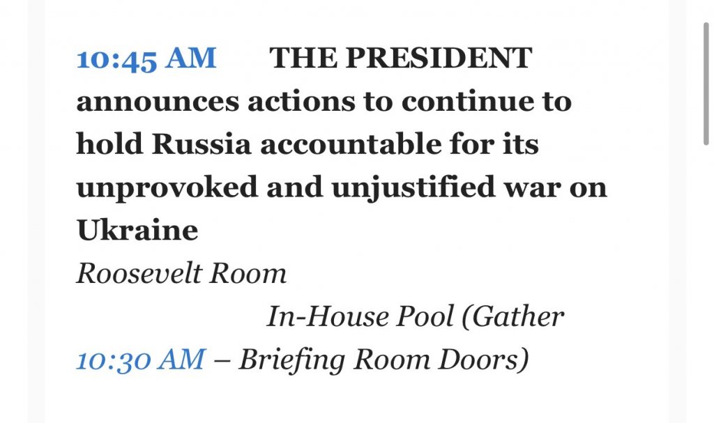 Biden was set to announce the move as soon as Tuesday, the person said, speaking on the condition of anonymity to discuss the matter before an announcement. The White House said Biden would speak Tuesday morning to announce “actions to continue to hold Russia accountable for its unprovoked and unjustified war on Ukraine.”