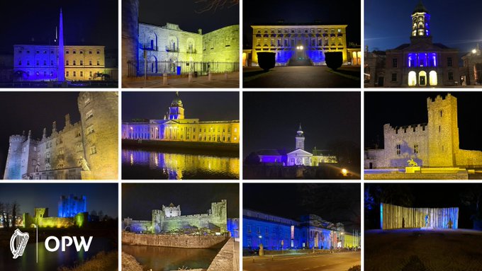 The Office of Public Works (OPW) today (Wednesday March 16) announced the change from the typical green Ireland is known for to blue and yellow to express solidarity with the people of Ukraine.